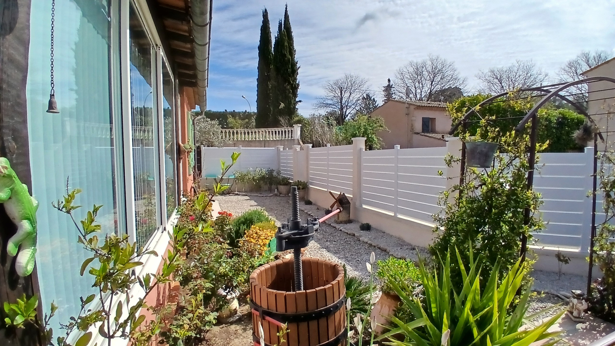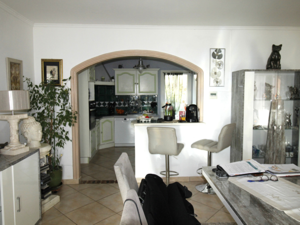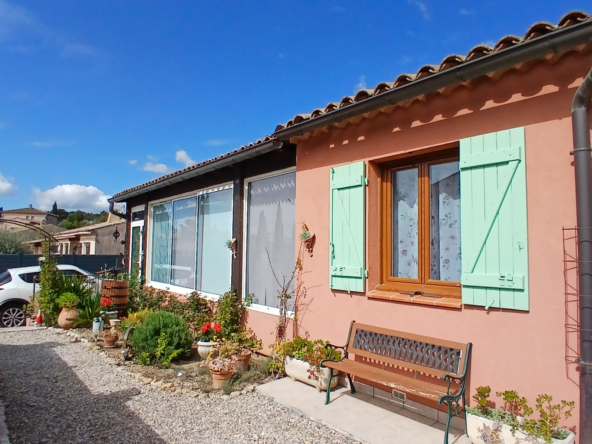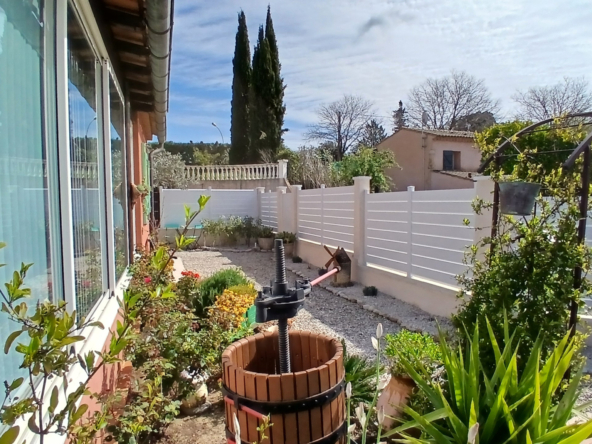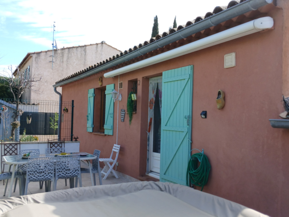 Agréable maison aménagée avec goût proche du centre ville de LORGUES de 91 m2 sur un terrain d’environ 400 m2 comprenant 2 chambres, cuisine entièrement équipée ouvert sur le séjour avec cheminée, salle de bain, wc avec un grand garage d’nviron 40 m2