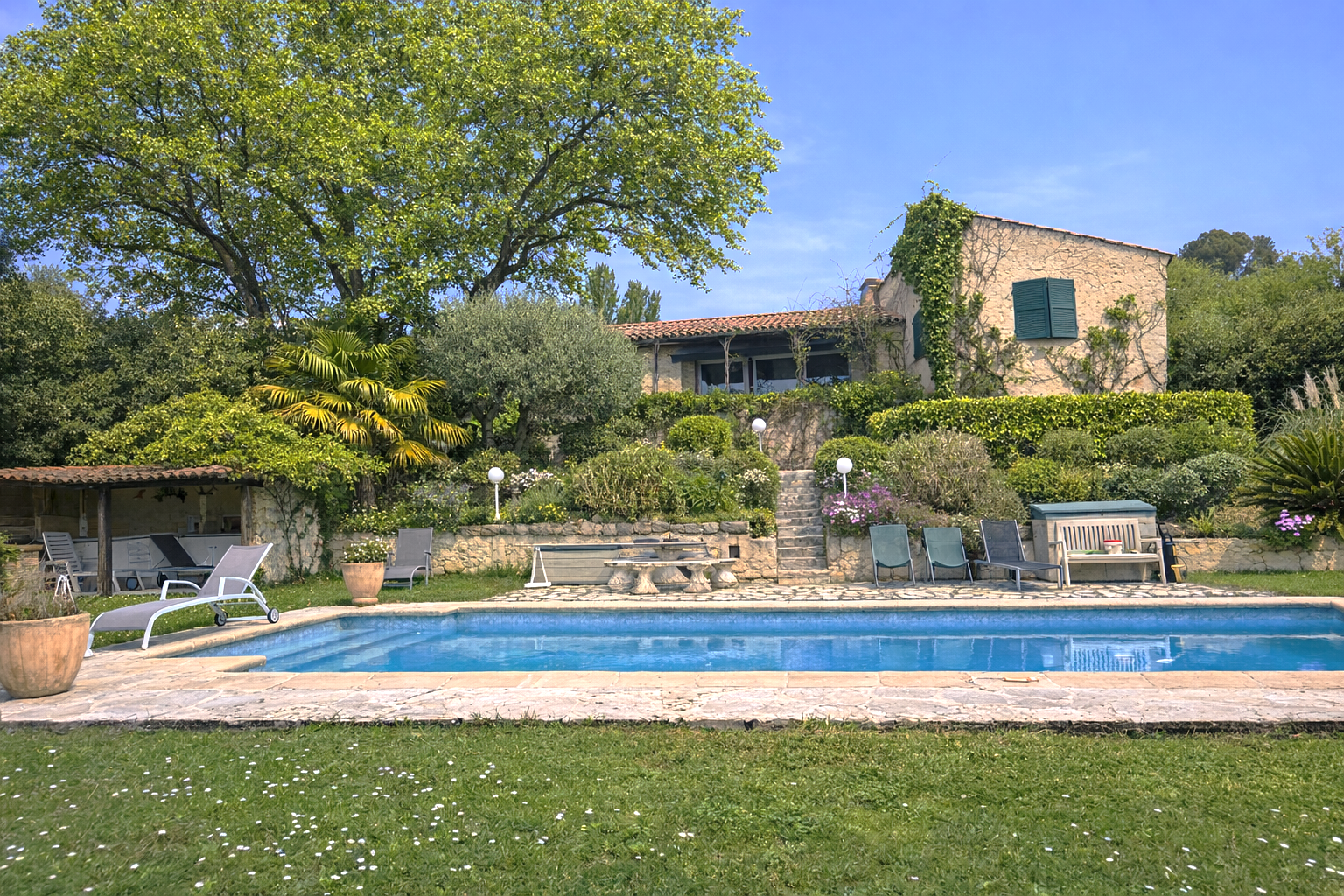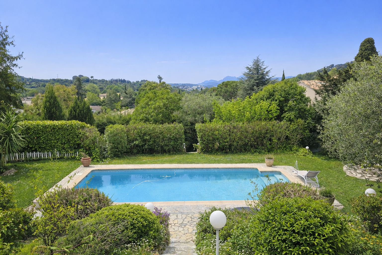 Cette maison à vendre à Mougins réunit tous les atouts recherchés : calme, vue dégagée, grand terrain, piscine, et situation privilégiée dans l’un des secteurs les plus prisés de la Côte d’Azur.
