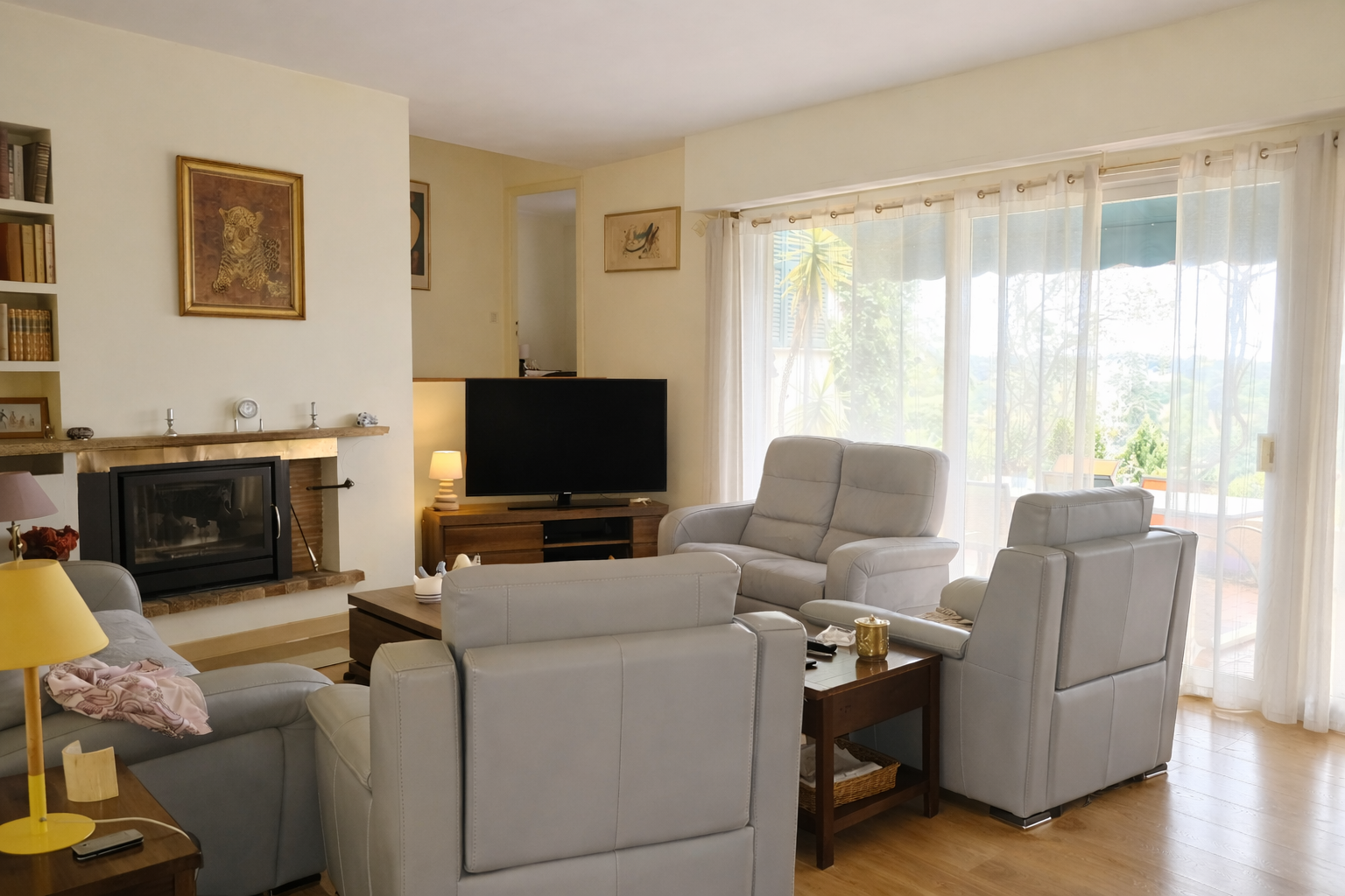 À l’intérieur, vous découvrirez un grand séjour lumineux, permettant de profiter pleinement de la lumière naturelle et du panorama sur un fonds mer et sur le village de Mougins.