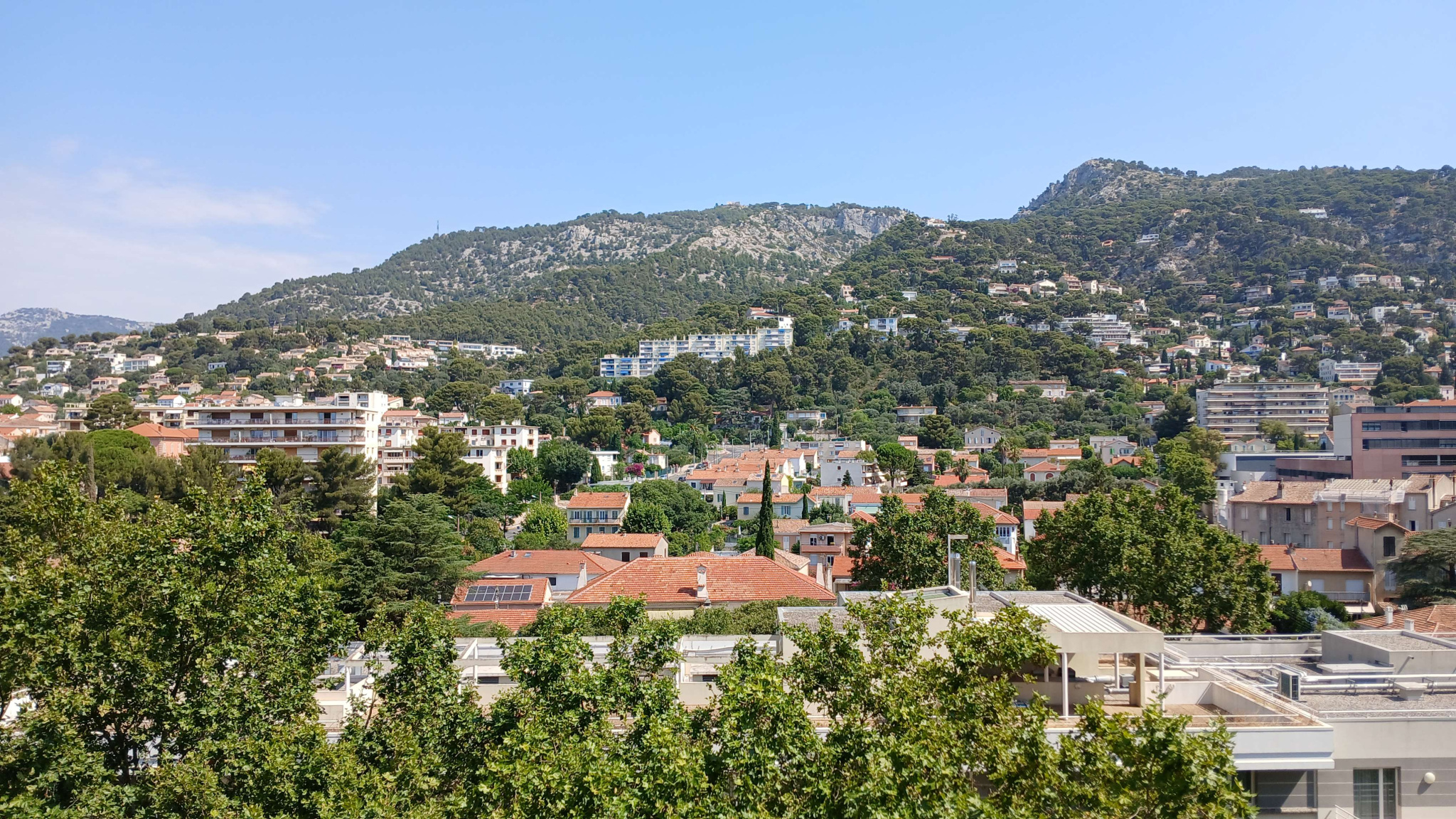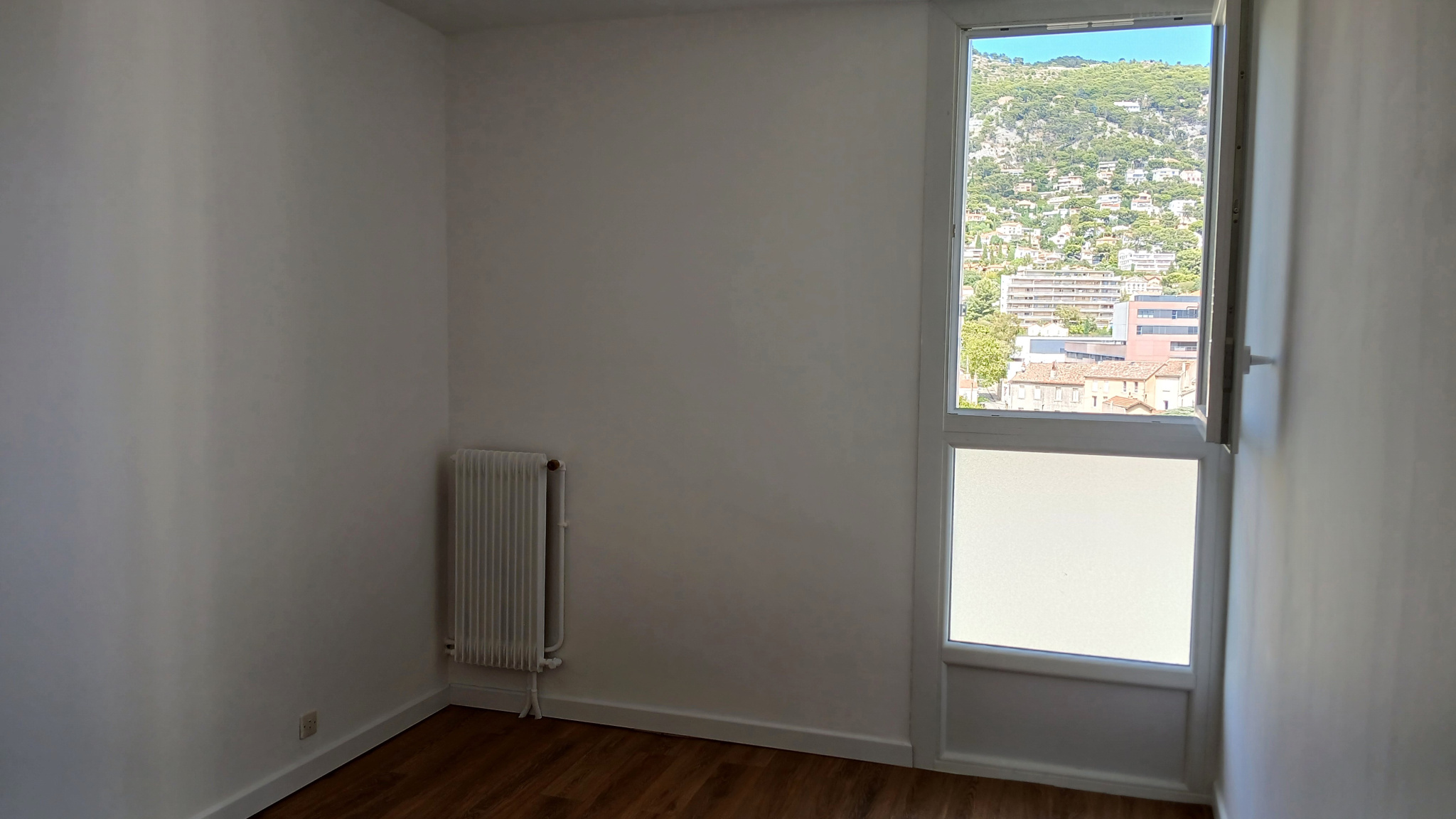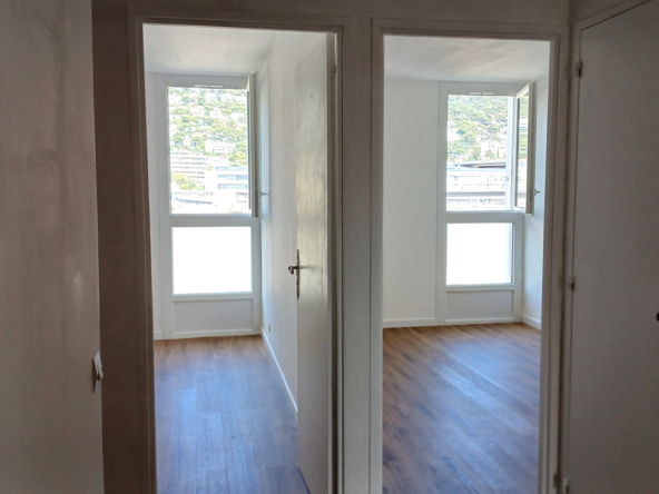 En étage élevé au 10ème étage, il offre un panorama exceptionnel. Vue sur le Mont Faron côté chambres et vue dégagée côté balcon, sans vis-à-vis